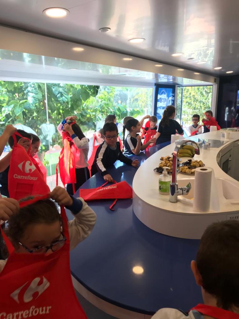 La Caravana de la salud es una a iniciativa de Carrefour que nació con la intención de promover una alimentación sana y divertida entre los niños, haciéndoles conscientes de los alimentos que toman y enseñándoles a ver que la cocina puede ser divertida. A través de talleres prácticos nuestros alumnos han conocido los beneficios de la buena alimentación cocinando con sus propias manos recetas del libro de Ferran Adrià y Disney “Te cuento en la cocina”.
